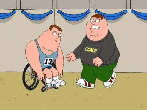 Крис устраивает автомойку, чтобы собрать деньги для больного друга Пола, которому срочно нужна пересадка печени, но всю выручку крадёт вор. Джо пытается задержать преступника, однако тот уходит, и для Джо это становится болезненным ударом по самооценке: он ощущает себя бесполезным и теряет уверенность. Питер решает «вернуть ему дух» и предлагает выступить на Специальных Играх, берётся тренировать Джо и быстро превращает подготовку в личный проект — с громкими заявлениями и мечтой о славе.